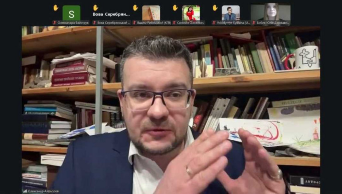 Олександр Алфьоров під час онлайн-зустрічі (ілюстрація: uinp.gov.ua)