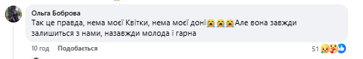 "Так, це правда, нема моєї Квітки, нема моєї доні. Але вона завжди залишиться з нами, назавжди молода і гарна", - написала вона.