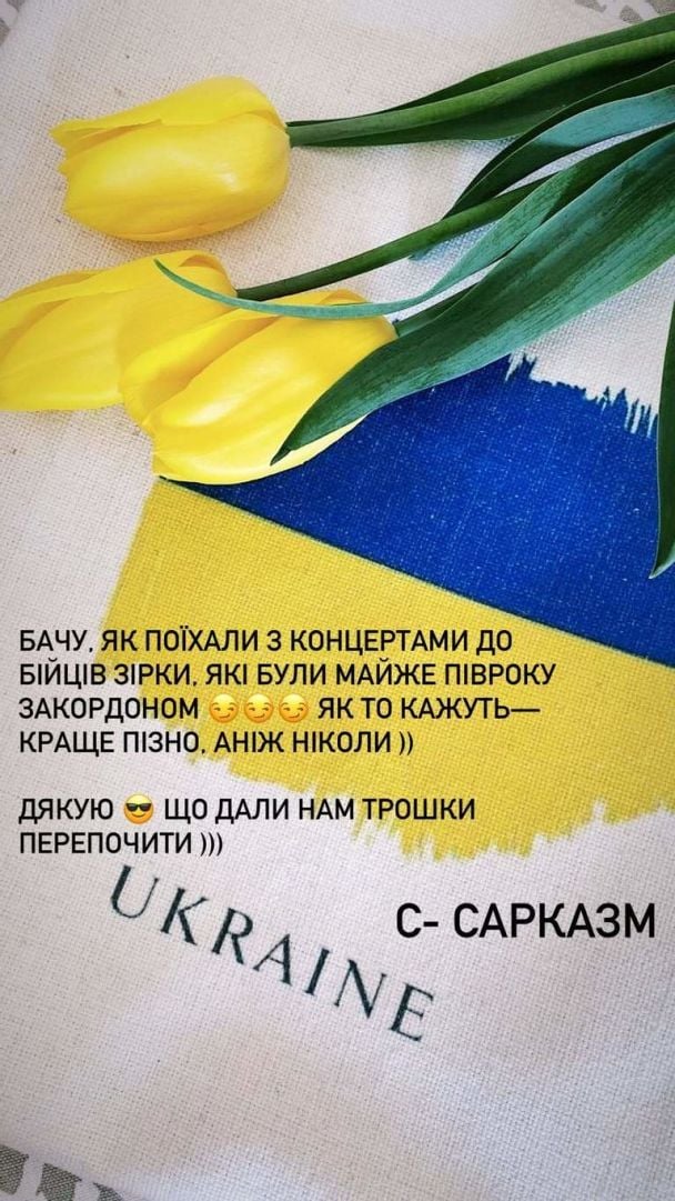 Вочевидь, мова йде про опубліковану влітку 2022 року сториз, коли вона саркастично відреагувала на повернення зірок в Україну.