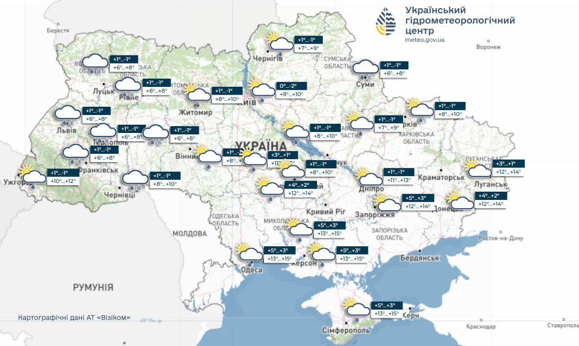 Наступний тиждень суттєвого тепла в Україну не принесе. Дощі прогнозуються кожного дня, місцями з мокрим снігом.